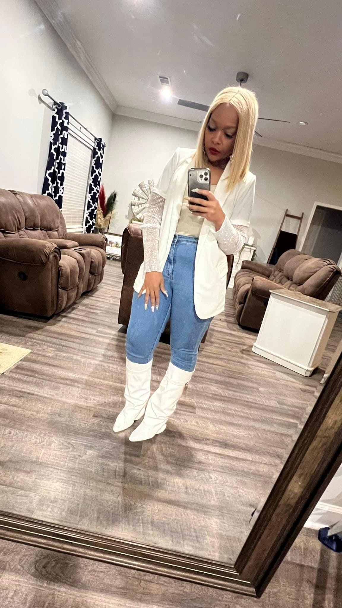 I have these blazer in several colors, and it is gorgeous. As the other customer stated, this boutique is notorious for cutting tags out of their clothing. I am not interested in starting a boutique, so I don’t understand what the reasoning behind this was. I made one purchase and never purchased again.